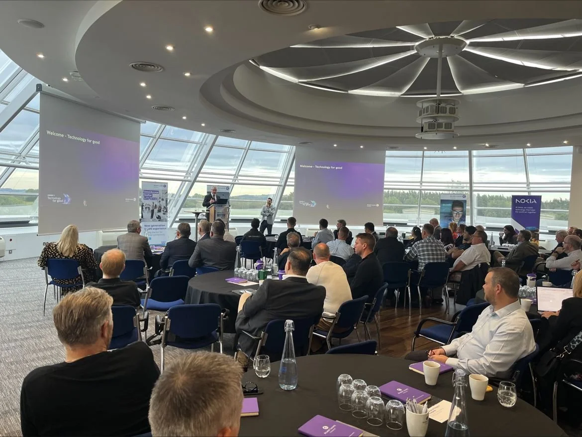 With the theme of the event centered around the idea of the positive impact of technology, we used a forward facing chevron as the main graphic. This could be used as a device through which various scenes could be depicted.