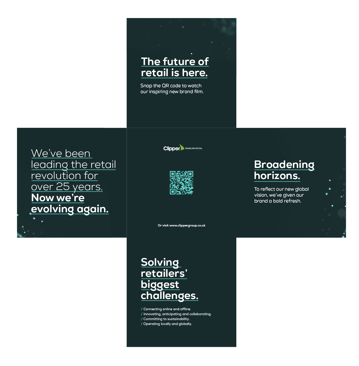 A direct mailer was created to send out to stakeholders, this would link them to the new brand film which would be used to announce the identity evolution.