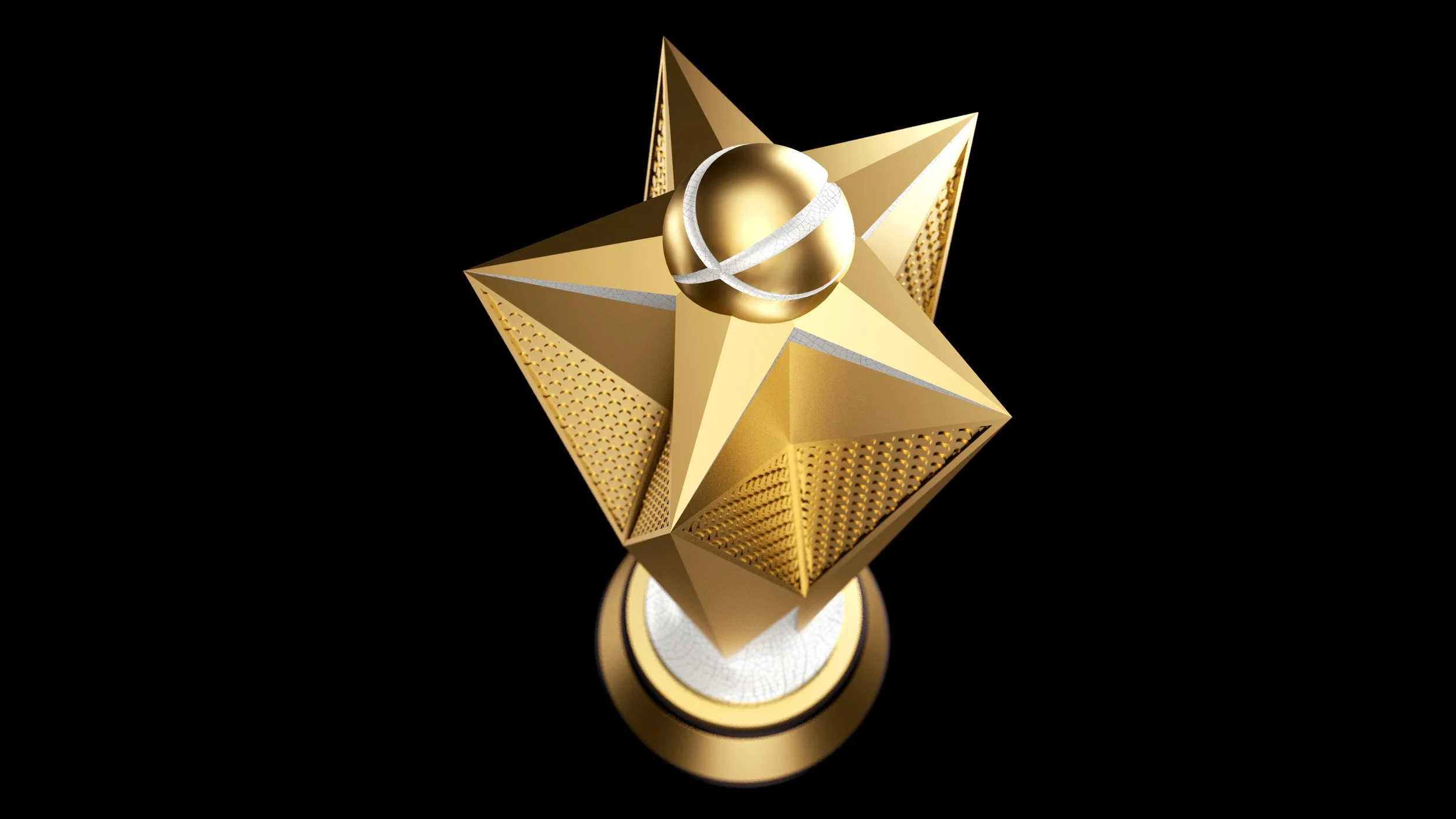A basketball rises up through the central point of the trophy form lifting up its direction towards a dynamic summit.