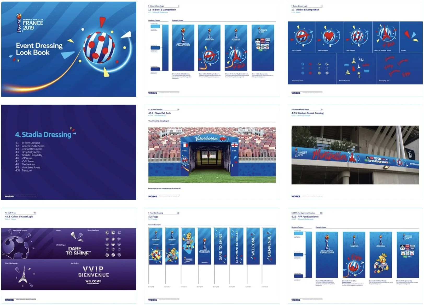 A range of designs were derived from the main key visuals, these would would be used to promote host cities, participating teams and mascots