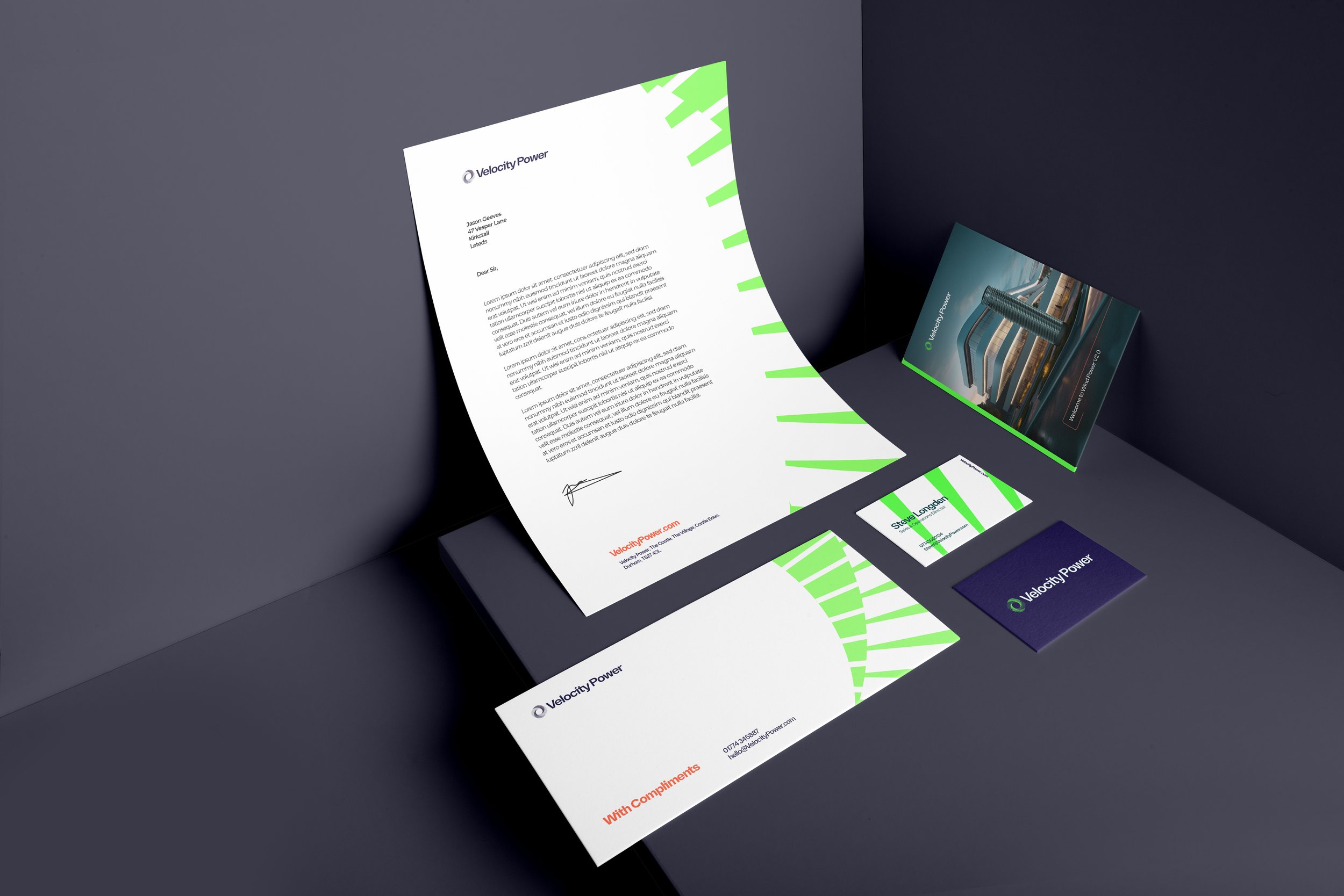 A set of stationary was developed using a fluro green specifically created for the brand to tie it in with the digital first assets.
